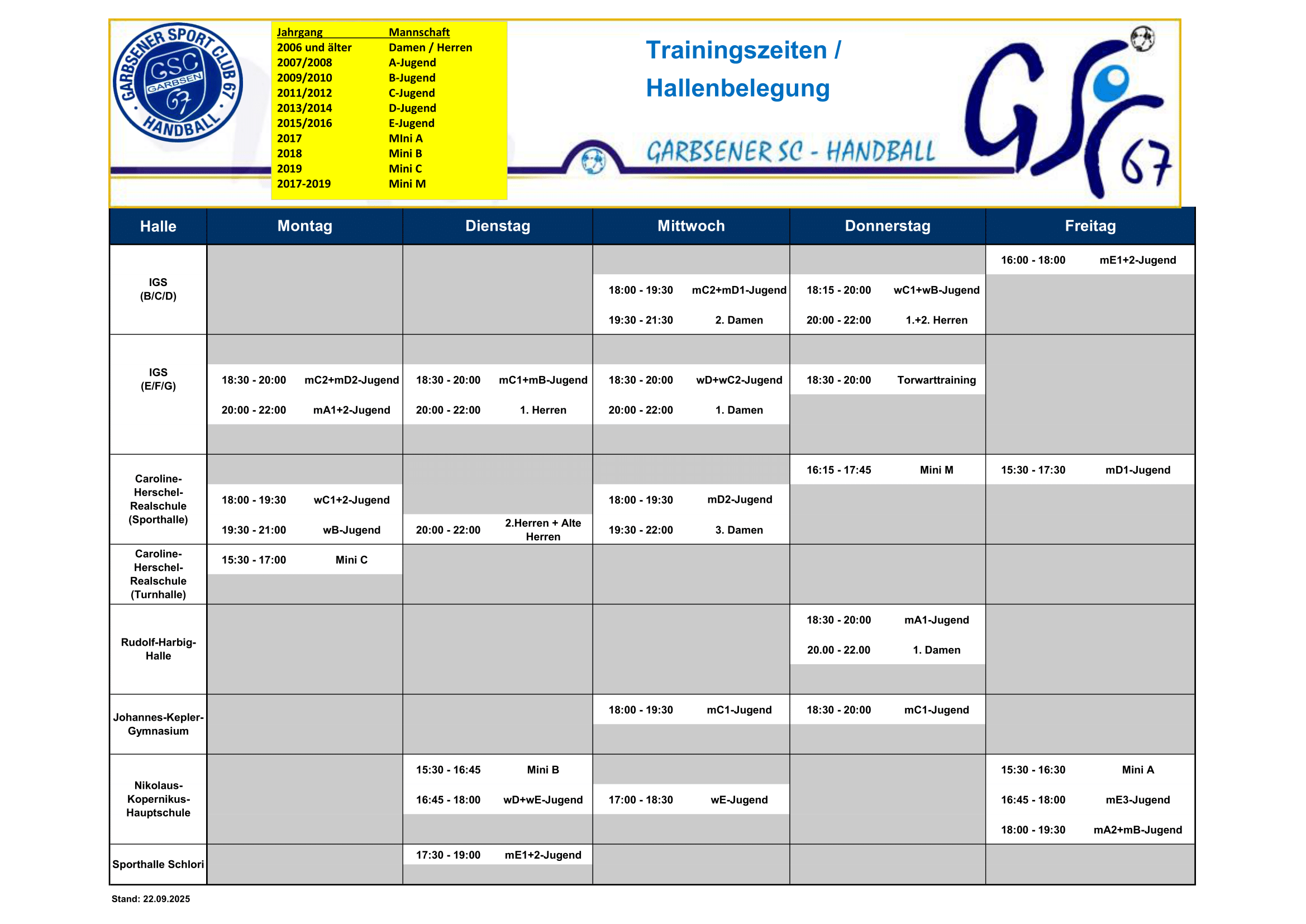 GSC-Trainingszeiten Stand 22.09.2025